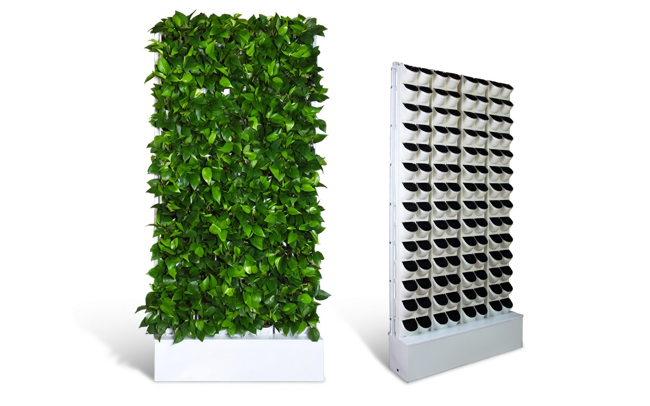 Mit einer beeindruckenden Höhe von 200 cm ist die AMELIA Pflanzenwand ein wahrer Blickfang. Außerdem werten ihre großzügigen Maße von 100 x 41 cm jedes Interieur auf. Diese vertikale Gartenlösung bietet 112 Pflanzkapseln für Ihre kreative Freiheit.