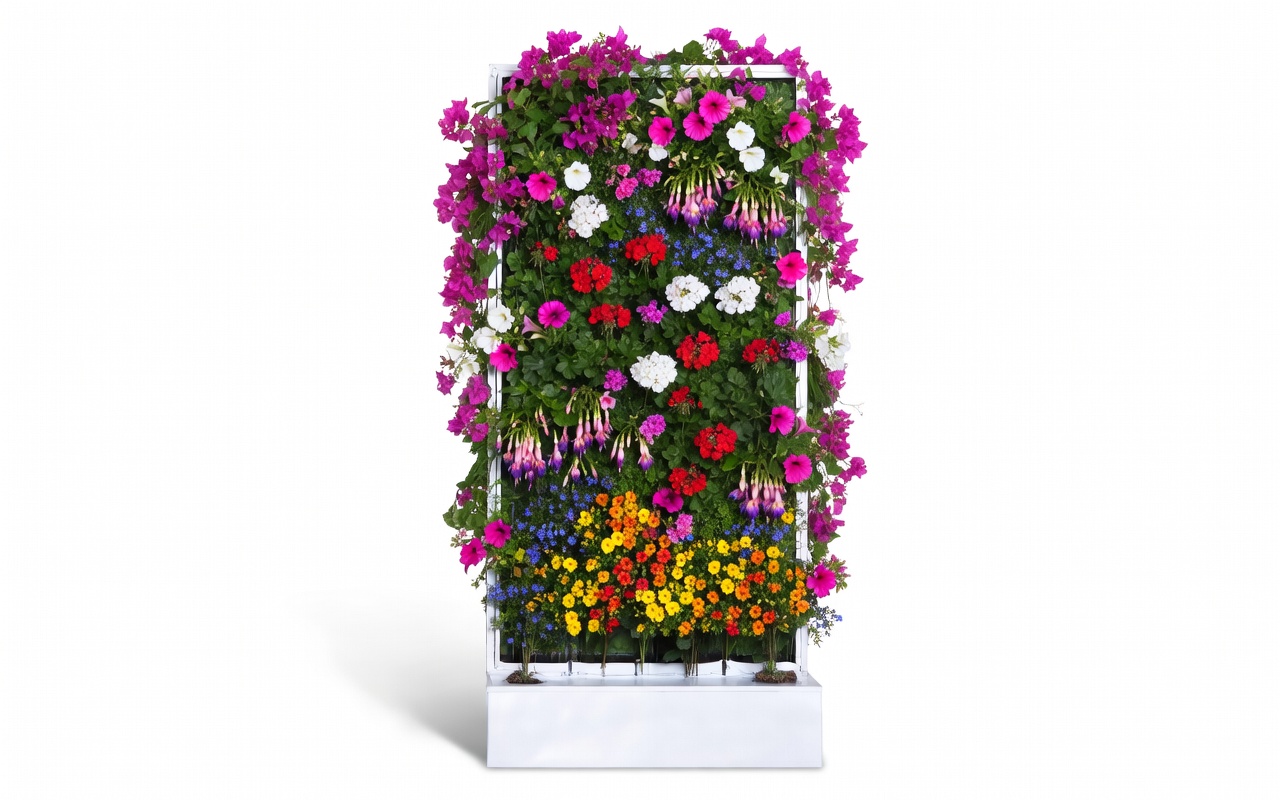 Gestalten Sie eine üppige Pflanzenwand mit lebhaften Blumen, aromatischen Kräutern, knackigem Salat oder frischem Grün. Die großzügige Wasserreserve von 40 Litern stellt sicher, dass Ihre Pflanzen immer gut versorgt sind. So können sie dauerhaft gedeihen und ihre volle Schönheit entfalten.