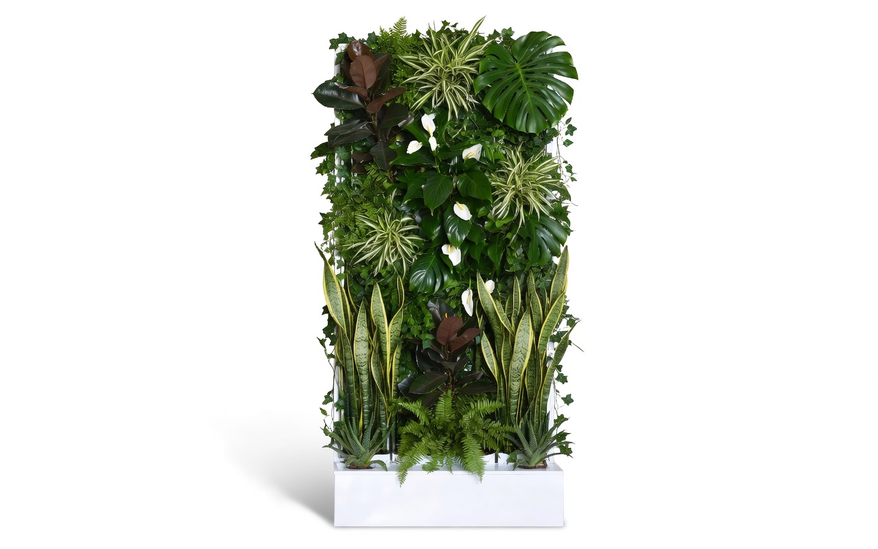 Verleihen Sie Ihrem Zuhause Stil und Frische mit der AMELIA Pflanzenwand – die elegante grüne Oase für jeden Raum.